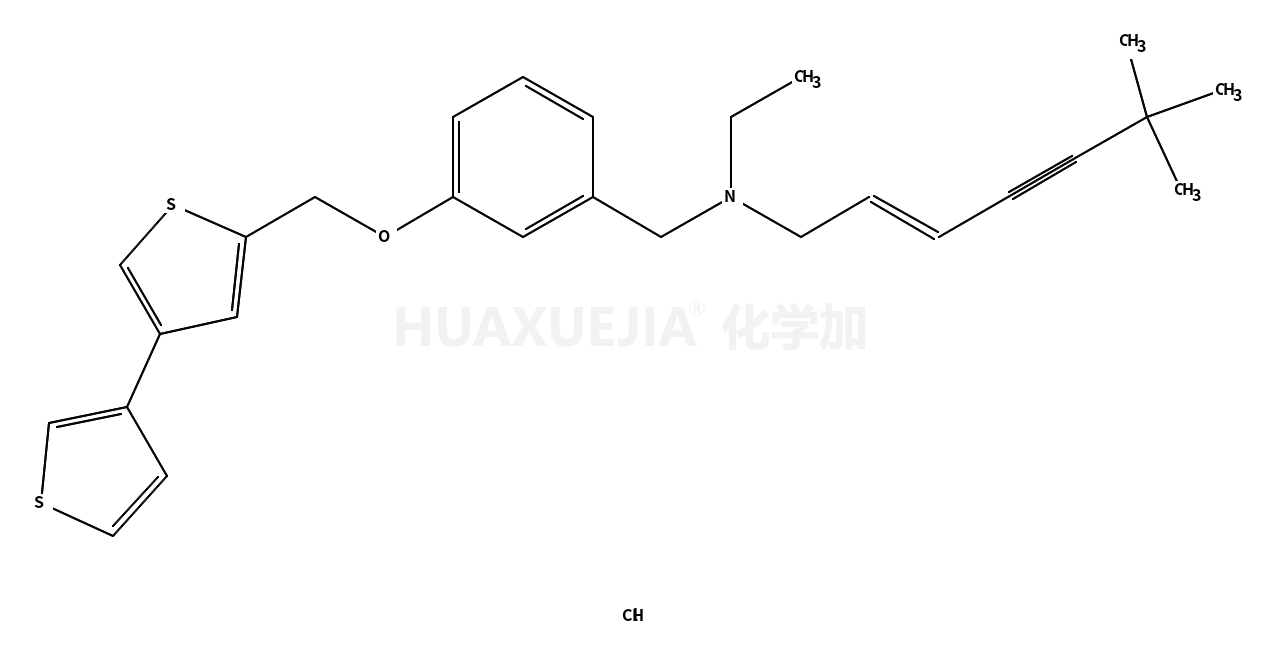 | 英文名 | (E)-N-ethyl-6,6-dimethyl-N-[[3-[(4-thiophen-3-ylthiophen-2-yl)methoxy]phenyl]methyl]hept-2-en-4-yn-1-amine,hydrochloride | ||||