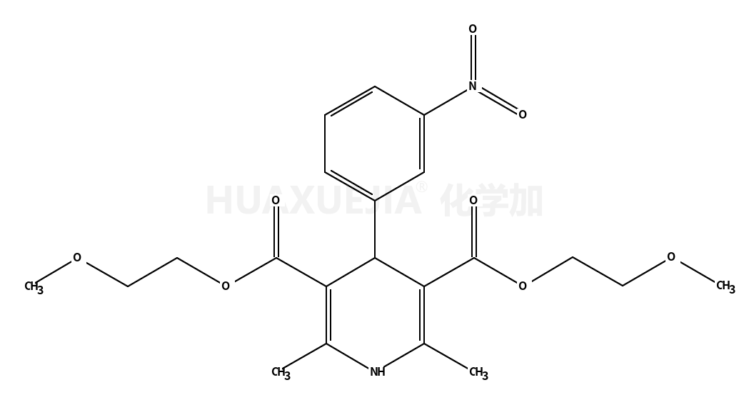 | 英文名 | Bis(2-methoxyethyl) 2,6-dimethyl-4-(3-nitrophenyl)-1,4-dihydro-3, 5-pyridinedicarboxylate | ||||