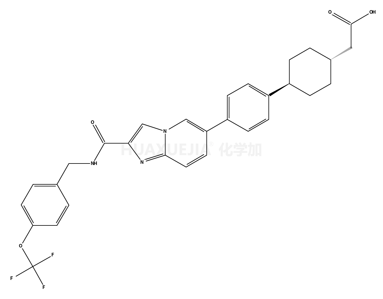 | 英文名 | Cyclohexaneacetic acid, 4-[4-[2-[[[[4-(trifluoromethoxy)phenyl]methyl]amino]carbonyl]imidazo[1,2-a]pyridin-6-yl]phenyl]-, trans- | ||||