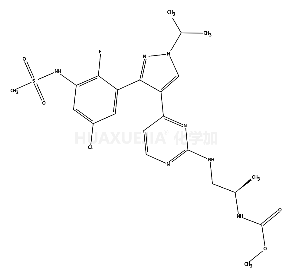 | 英文名 | methyl N-[(2S)-1-[[4-[3-[5-chloro-2-fluoro-3-(methanesulfonamido)phenyl]-1-propan-2-ylpyrazol-4-yl]pyrimidin-2-yl]amino]propan-2-yl]carbamate | ||||