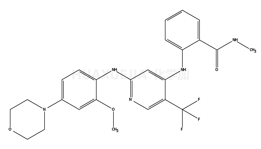 | 英文名 | 2-{[2-{[2-Methoxy-4-(4-morpholinyl)phenyl]amino}-5-(trifluorometh yl)-4-pyridinyl]amino}-N-methylbenzamide hydrochloride (1:1) | ||||