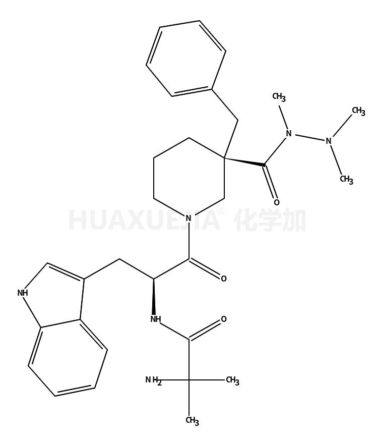 | 英文名 | 2-amino-N-[(2R)-1-[(3R)-3-benzyl-3-[dimethylamino(methyl)carbamoyl]piperidin-1-yl]-3-(1H-indol-3-yl)-1-oxopropan-2-yl]-2-methylpropanamide | ||||