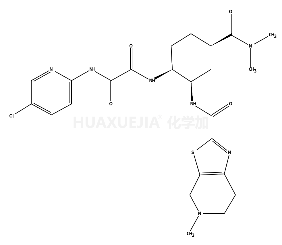 | 英文名 | N1-(5-chloropyridin-2-yl)-N2-((1R,2S,4S)-4-[(dimethylamino)carbonyl]-2-{[(5-methyl-4,5,6,7-tetrahydrothiazolo[5,4-c]pyridin-2-yl)carbonyl]amino}cyclohexyl)ethanediamide | ||||