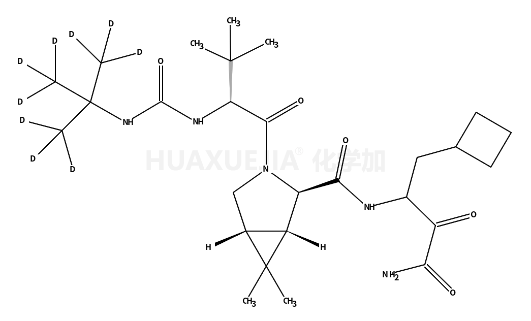| 英文名 | (1R,2S,5S)-N-(4-amino-1-cyclobutyl-3,4-dioxobutan-2-yl)-3-[(2S)-2-[[1,1,1,3,3,3-hexadeuterio-2-(trideuteriomethyl)propan-2-yl]carbamoylamino]-3,3-dimethylbutanoyl]-6,6-dimethyl-3-azabicyclo[3.1.0]hexane-2-carboxamide | ||||